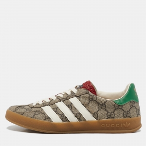 حذاء رياضي غوتشي \"آيس\" ببني وبيج من كانفاس جي جي سوبريم وتفاصيل ويب وبنمط منخفض من أعلى مقاس 37
