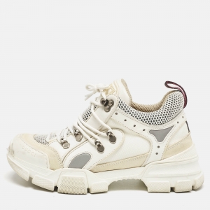حذاء رياضي غوتشي فلاش تريك جلد أبيض ومخمل مقاس 38
