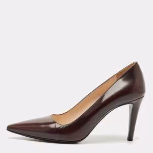 حذاء كعب عالي برادا جلد لامع وعنق جلد مخملي بوردو مقاس 36.5
