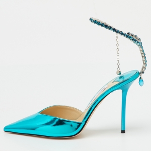 حذاء كعب عالي جيمي تشو سيدا جلد برّاق أزرق مقدمة مدببة كريستال مقاس 38.5