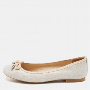 حذاء فلات باليه غوتشى جلد نقش سحلية وكانفاس جى جى بيج / بنى مقاس 38.5