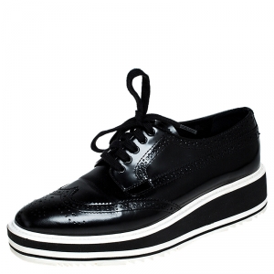 حذاء رياضي برادا نعل سميك وينغتيب جلد بروغ أسود مقاس 37.5