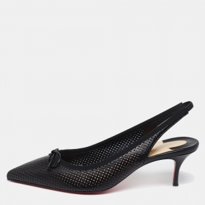 حذاء كعب عالي كريستيان لوبوتان فيري بريفي جلد لامع أسود مقدمة مفتوحة مقاس 40.5