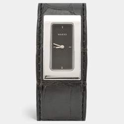 ساعة يد نسائية غوتشي 7800 سلسلة وجه أسود ستانلس ستيل جلد تمساح 18 مم