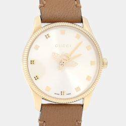 ساعة يد نسائية غوتشي G-تايمليس 126.5 جلد ستانلس ستيل مطلية بالذهب الكريمي 27 مم