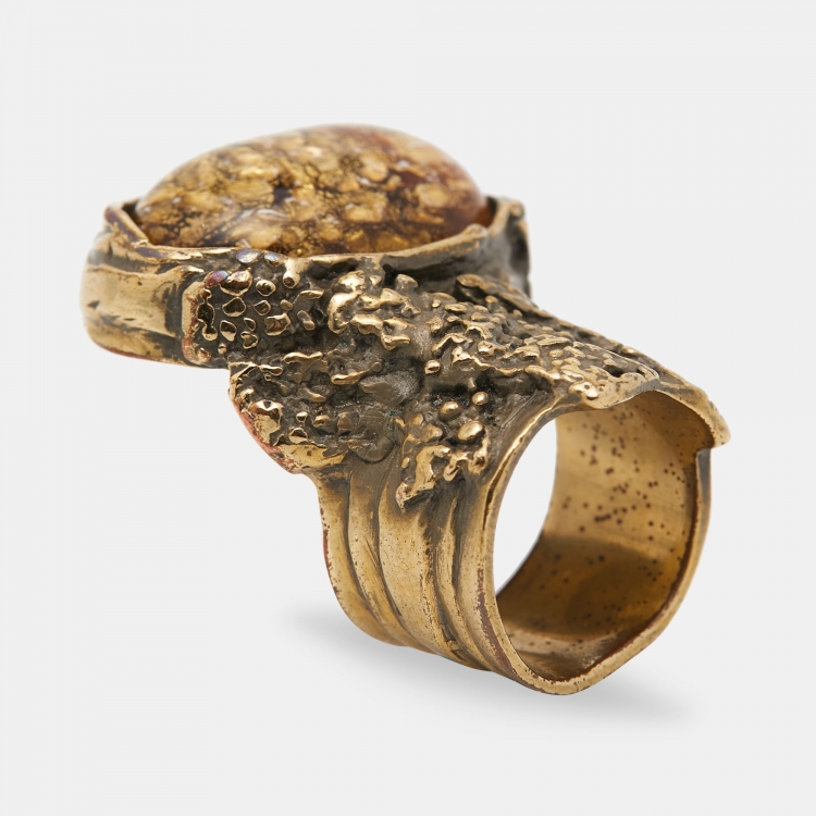 Yves Saint Laurent Arty Glass Cabochon Gold Tone Ring Size EU 54.5