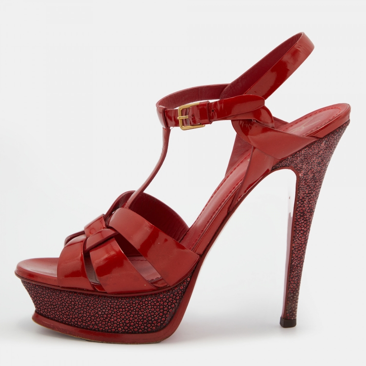 Yves Saint Laurent Orange Patent Leather Tribute Platform Sandals Size 39.5