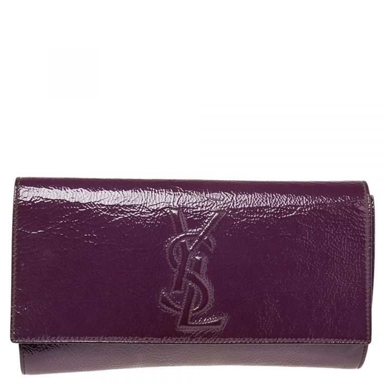 Pre Owned حقيبة كلتش أيف سان لوران بل دو جور قلاب جلد لامع أرجواني