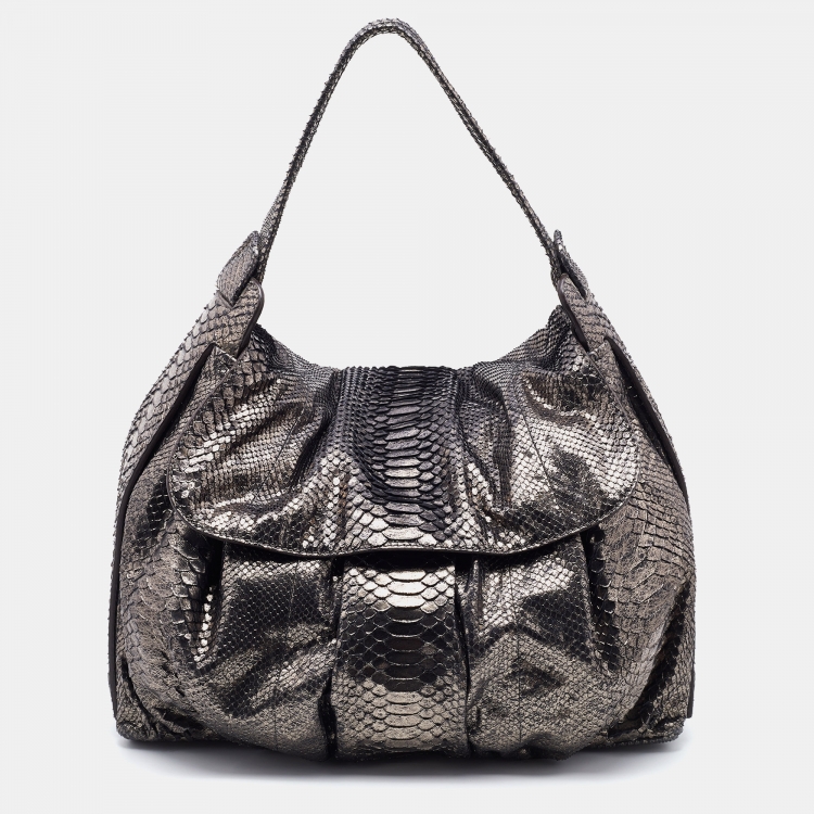Pre Owned Zagliani Silver Python Flap Hobo