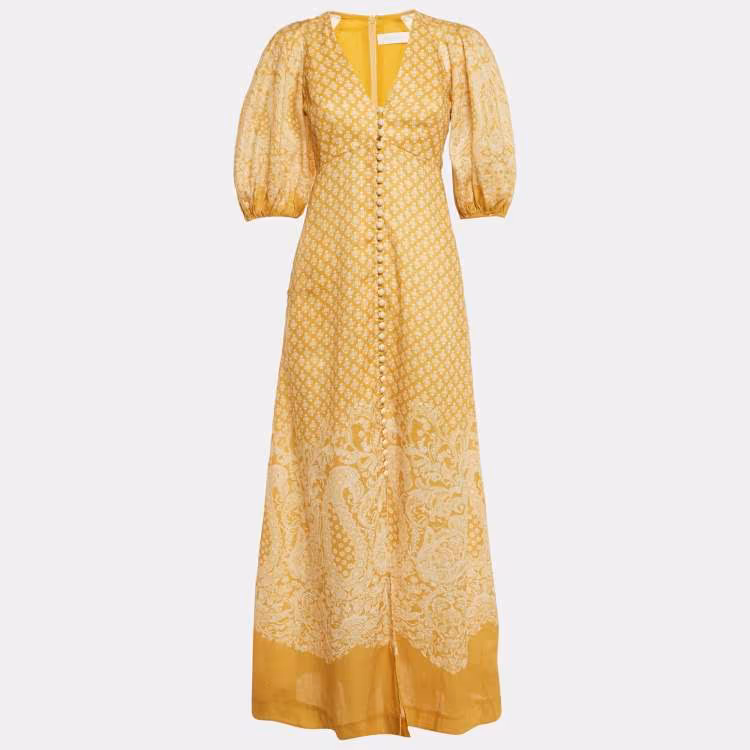 فستان زيمرمان بيسلي أصفر مطبوع كتان ماكسي مقاس صغير (سمول)