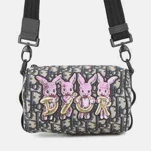 Dior Navy Blue Fabric Oblique Saddle Strap Pouch Crossbody Bag