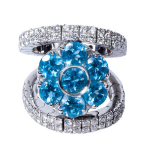 - Stefan Hafner White Gold Diamonds and Colored Sapphire Fancy Flower Ring