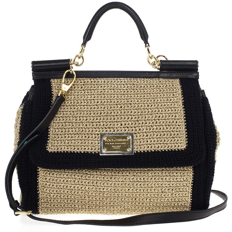 Dolce & Gabbana Black Woven Raffia Miss Sicily Top Handle