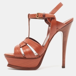 Yves Saint Laurent Brown Leather Tribute Sandals Size 36.5