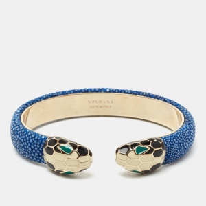 Bvlgari Blue Galuchat Leather Serpenti Forever Open Cuff Bracelet