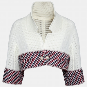 Chanel Cream Perforated Mesh Sequined Tweed Trim Chunky Cropped Jacket L