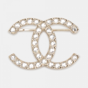 Chanel Metallic Silver Patent Metal Handle Clutch