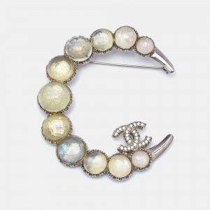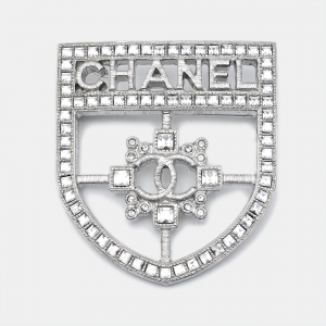 Chanel CC 'Forever' Crystals Gunmetal Tone Pin Brooch