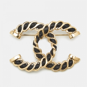 Chanel CC Black Enamel Baroque Gold Tone Pin Brooch