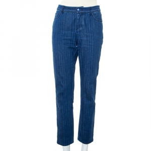 Chanel Navy Blue Striped Denim Tapered Leg Jeans M