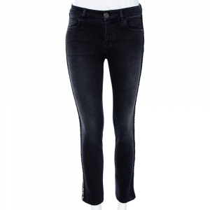 Chanel Black Denim Crochet Hem Detail Fitted Jeans M