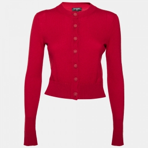Chanel Red Cashmere Contrast Trim Detail Button Front Cardigan L