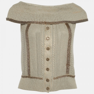 Chanel Gold Lurex Knit Bead Embellished Hook Front Cardigan M