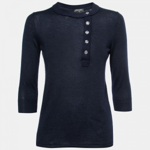 Chanel Blue Cashmere Knit Pearl Detail Sweater M