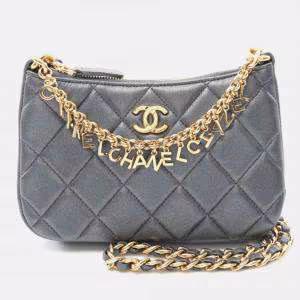 Chanel Grey Quilted Leather Chain Hobo Bag