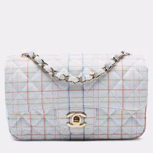 مملوكة مسبقًا Chanel White Mini Rectangular Classic Tweed Check Single Flap