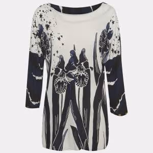 Class by Roberto Cavalli White/Black Printed Crepe Short Dress L