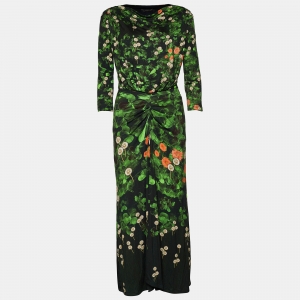 Class by Roberto Cavalli Green/Pink Floral Print Jersey Maxi Skirt L