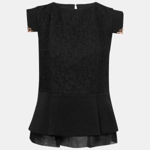 Class by Roberto Cavalli Black Wool Blend Embellished Detail Top L