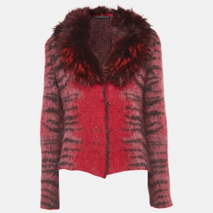 Class by Roberto Cavalli Red Patterned Knit Flounce Midi Dress M