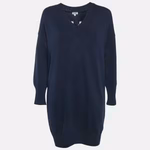 Moncler Kids Blue Cotton Eyelet Embroidered Dress 4 Yrs