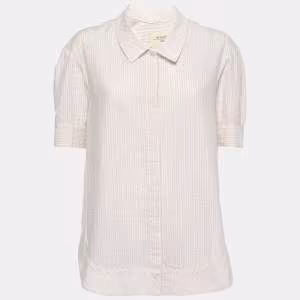 Giorgio Armani White Polka Dotted Silk Satin Gathered Blouse L