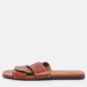Louis Vuitton Revival Size 38 White/Blue Monogram Leather Flat Slide