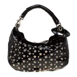 Valentino Red Floral Applique Satin and Patent Leather Shopper Tote