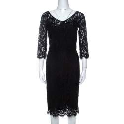 Valentino Black Leather Skirt Embellished Collar Detail Dress S