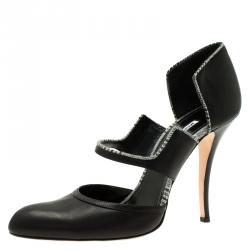 Miu Miu Black Leather Bow Detail D'Orsay Pointed Pumps Size 40