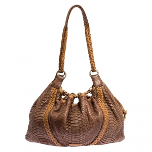 Bottega Veneta Purple Intrecciato Snakeskin and Leather Twist Lock Clutch