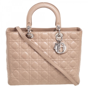 Dior Black Cannage Patent Leather Large Lady Dior Tote