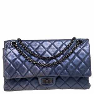 Chanel Navy Blue Python Leather Classic Double Flap Shoulder Bag