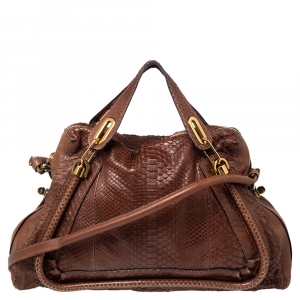 Saint Laurent Dark Red Snakeskin and Leather Baby Classic Sac De Jour Tote