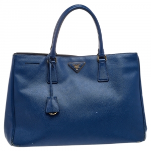 Prada Blue/Red Saffiano Leather Double Handle Tote