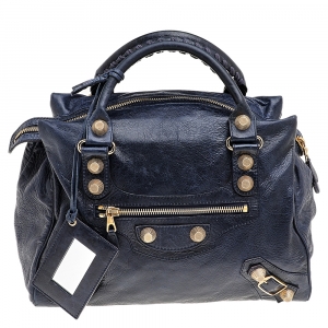 Versace Navy Blue/Orange Leather And Suede DV One Top Handle Bag