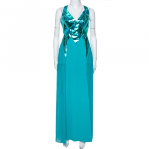 Carolina Herrera Silver Jacquard Embellished Detail Off Shoulder Gown M