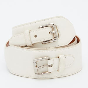 Ralph Lauren Cream Leather Buckle Waist Belt 80CM