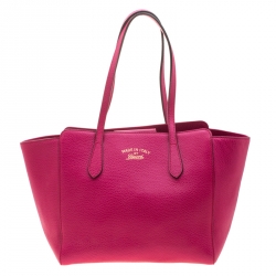 Gucci Fuchsia/Orange Leather Medium Exclusive Bamboo Shopper Top Handle Bag