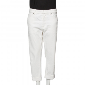 Dior White Distressed Denim Logo Selvedge Boyfriend Jeans L